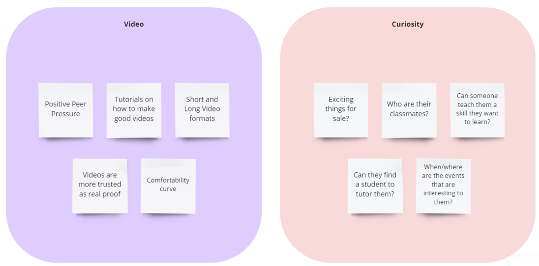 The usability test consisted of conducting approx 30-minute testing sessions with 5 students that fit YuTU’s target user demographic. Then we collected our notes and synthesized our findings with affinity maps