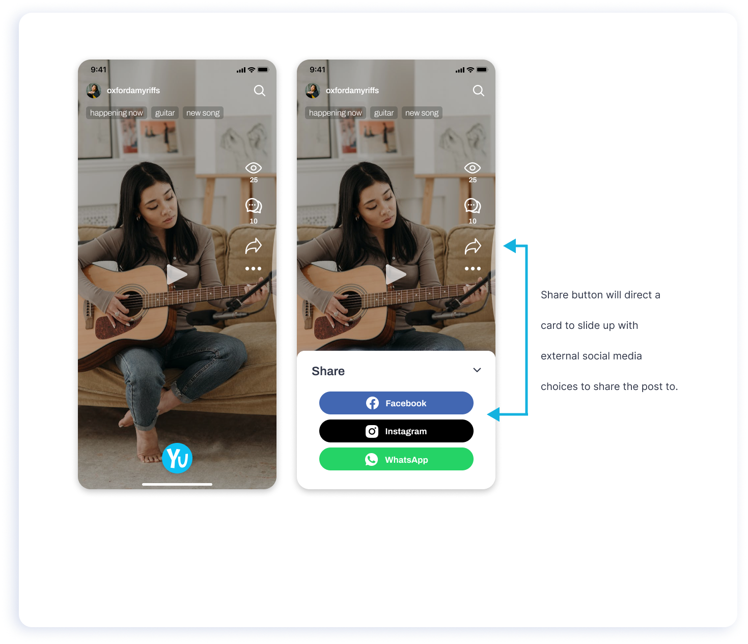 Testing share button capabilities - what would be sharing a post encompass? How would this impact user retention and acquisition?
